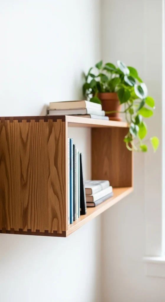 Floating shelves are one of the easiest ways to add function to any room. You only need a board, brackets, screws, and a drill. Cut your wood to size, sand it smooth, and mount it level.