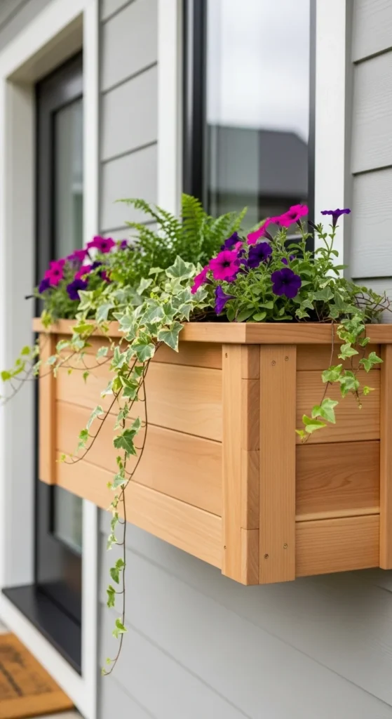 This combines decor and function. Build a small planter box and mount it outside.