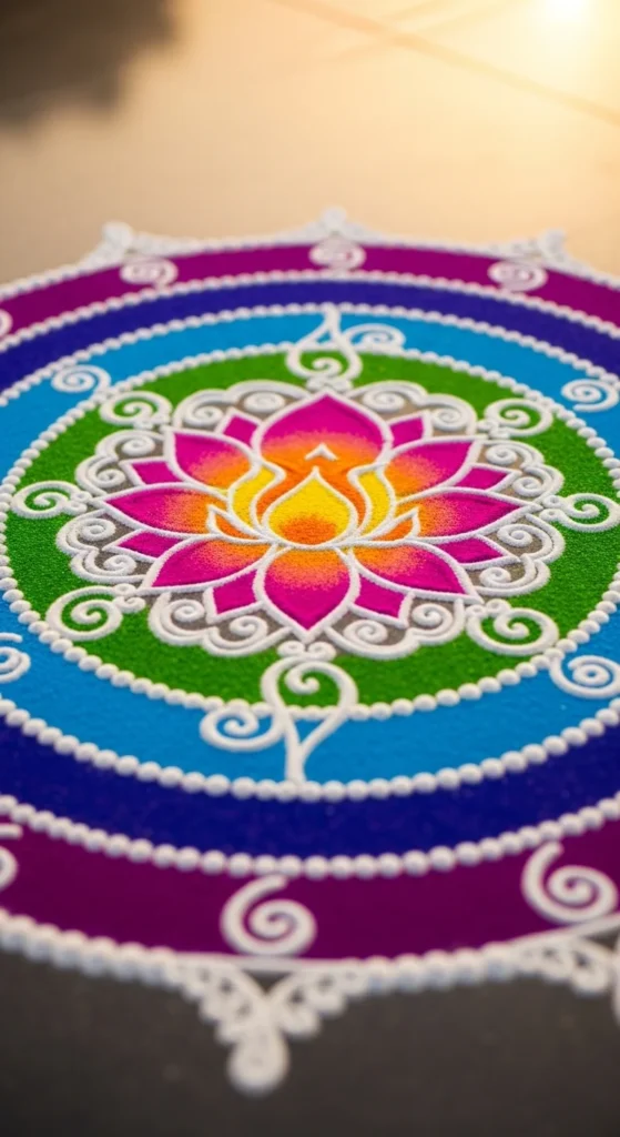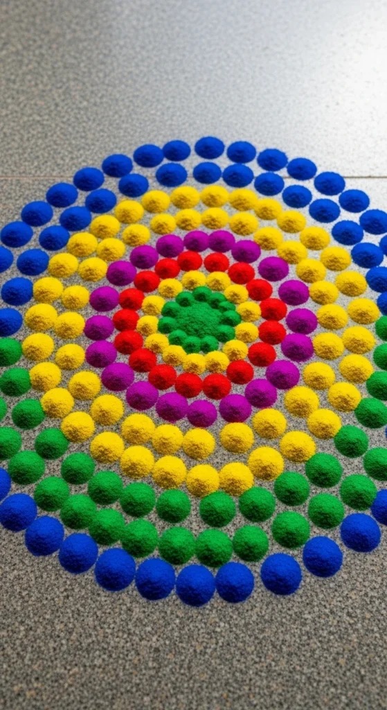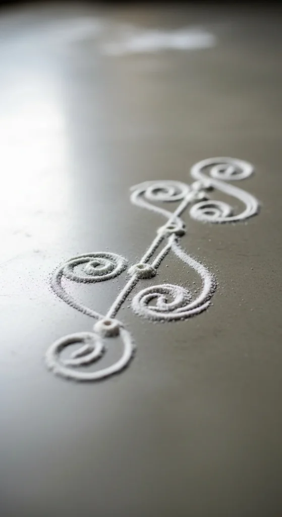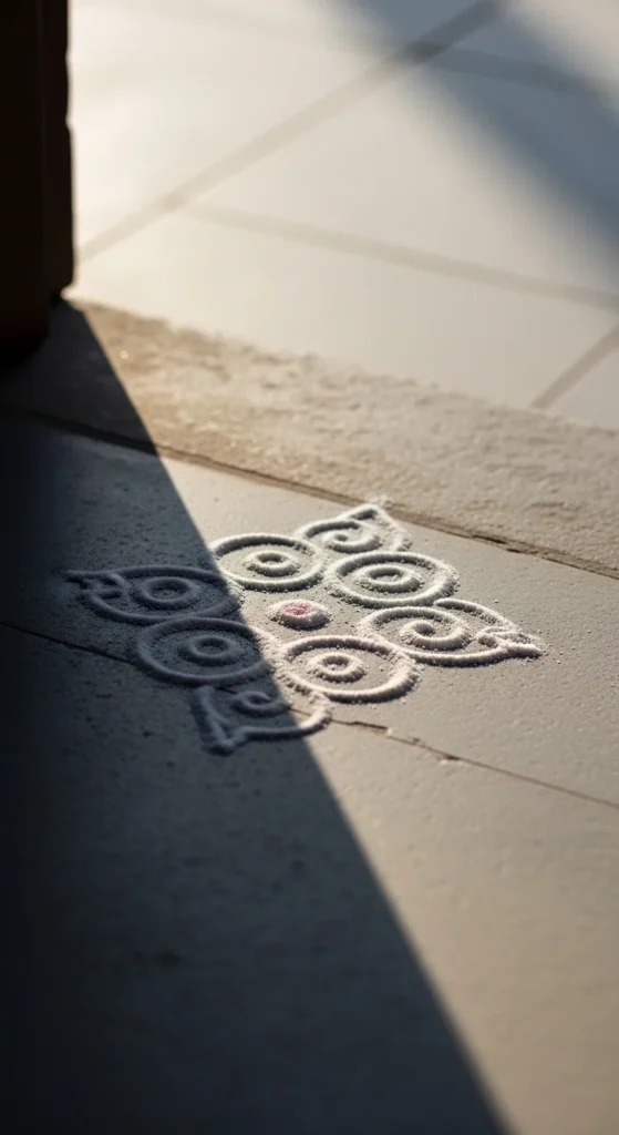 You now have all 29 foolproof beginner rangoli designs that are simple, affordable, and realistic to create at home. Start with dots and straight lines. Move toward petals and layered circles. Use petals or grains if powders feel messy. Practice small daily kolam patterns to steady your hand.