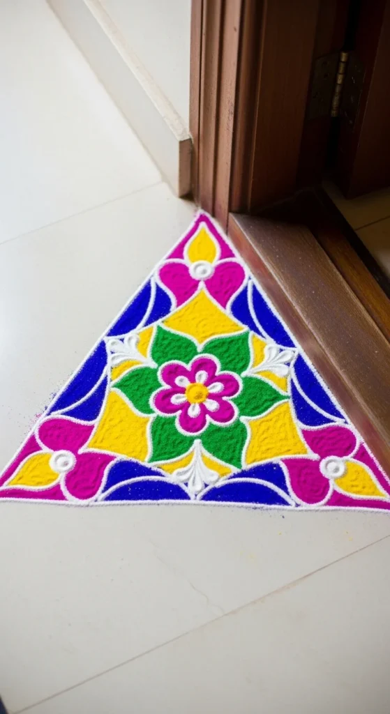 This works well when your rangoli sits against a wall or doorstep.