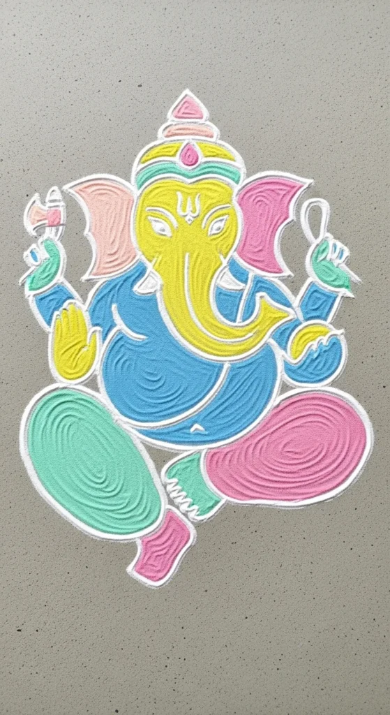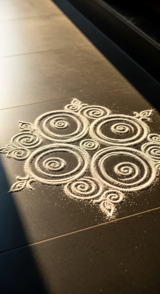 This rangoli works beautifully for puja rooms and small doorways.