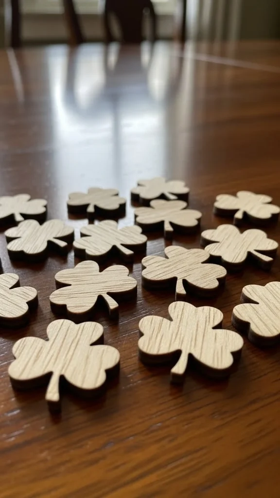 15. DIY Shamrock Table Scatter From Wood