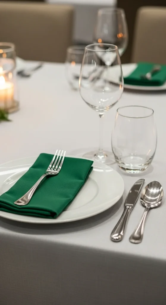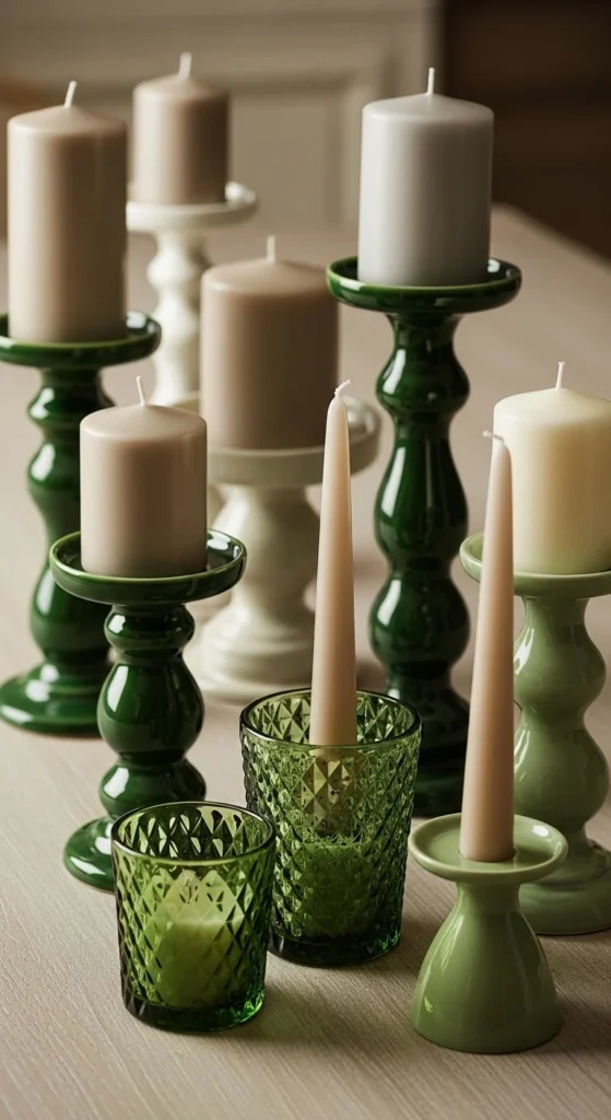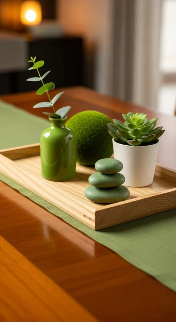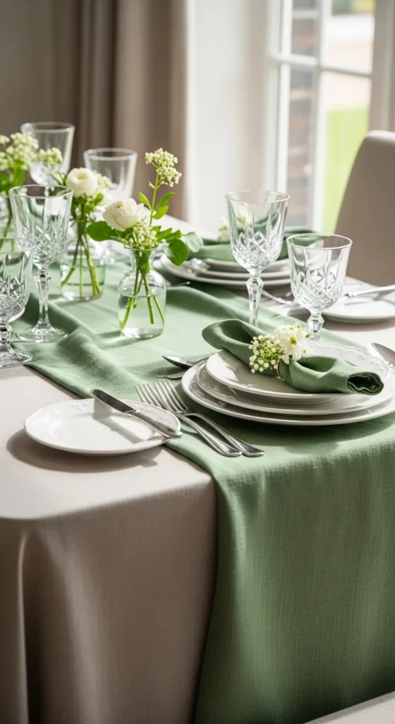 Fabric is one of the easiest ways to bring green into your space. Use cotton, linen, or gauze in muted green tones. Drape fabric runners loosely across tables or fold pieces as casual placemats.