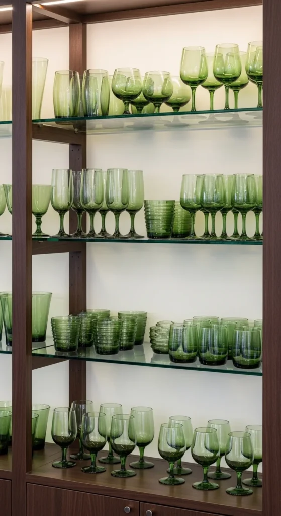 Thrift stores often have green glass at low prices. This decor stores easily and works year-round.