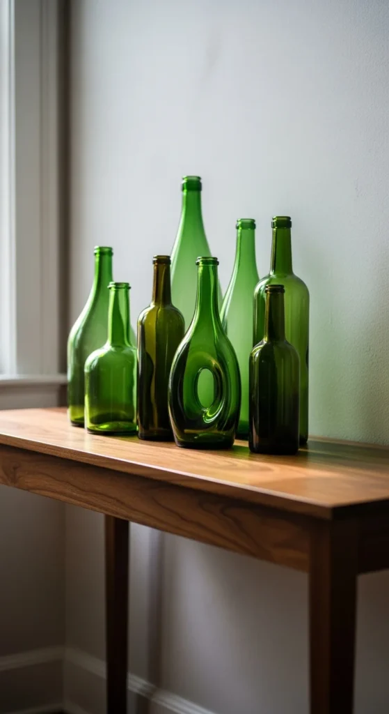 Group bottles in odd numbers and vary height slightly. Leave them empty or add a single stem.