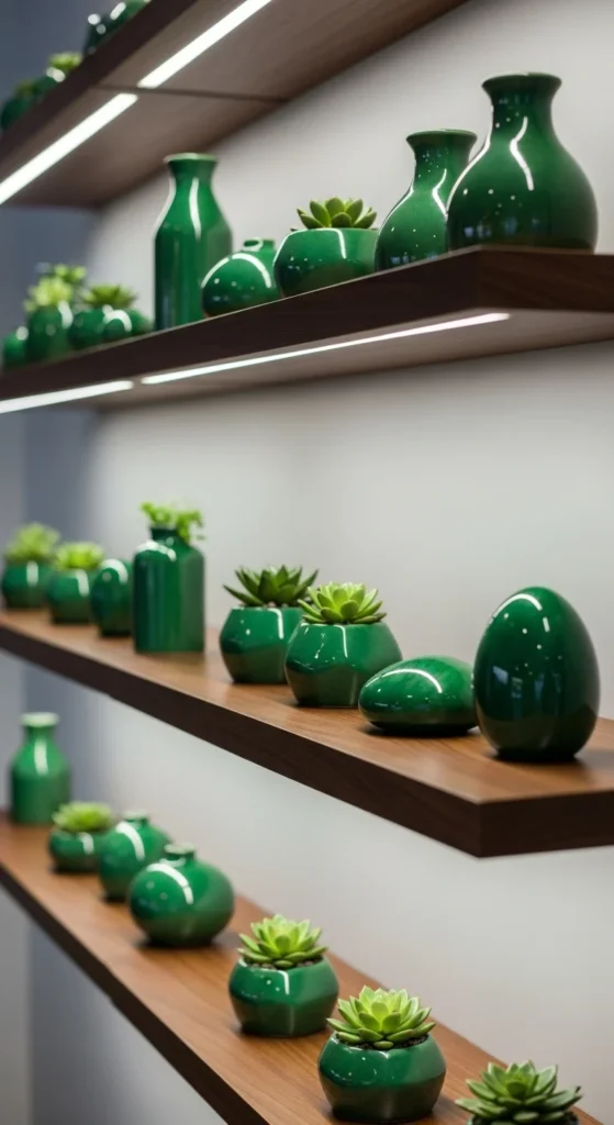 Choose one green item and let it stand alone. Avoid layering too many accents.