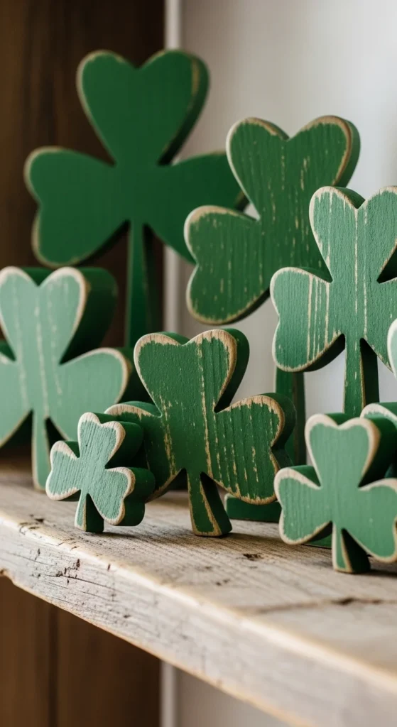 Cut shamrock shapes from scrap wood or thin boards. Paint lightly in green and sand edges.