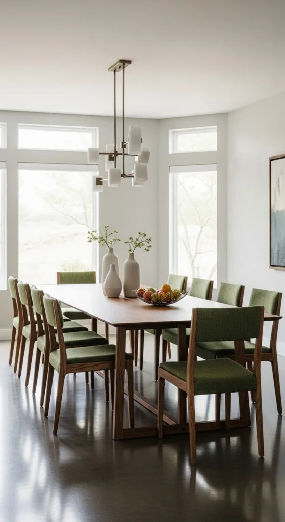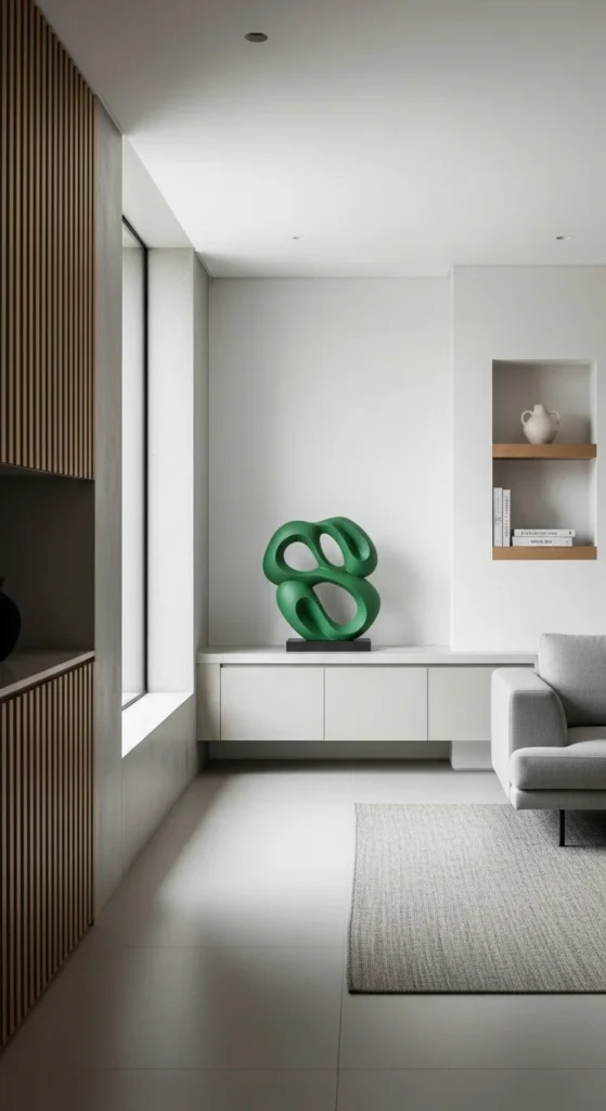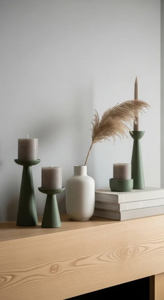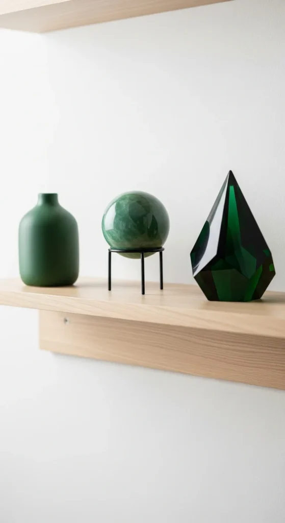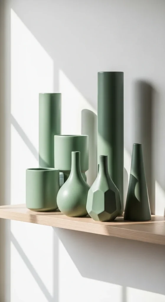 Green ceramic vases add color without clutter. Choose simple shapes with matte or satin finishes. Place them in small groups or let one stand alone for a calm look.
