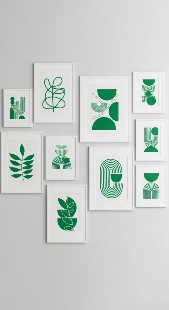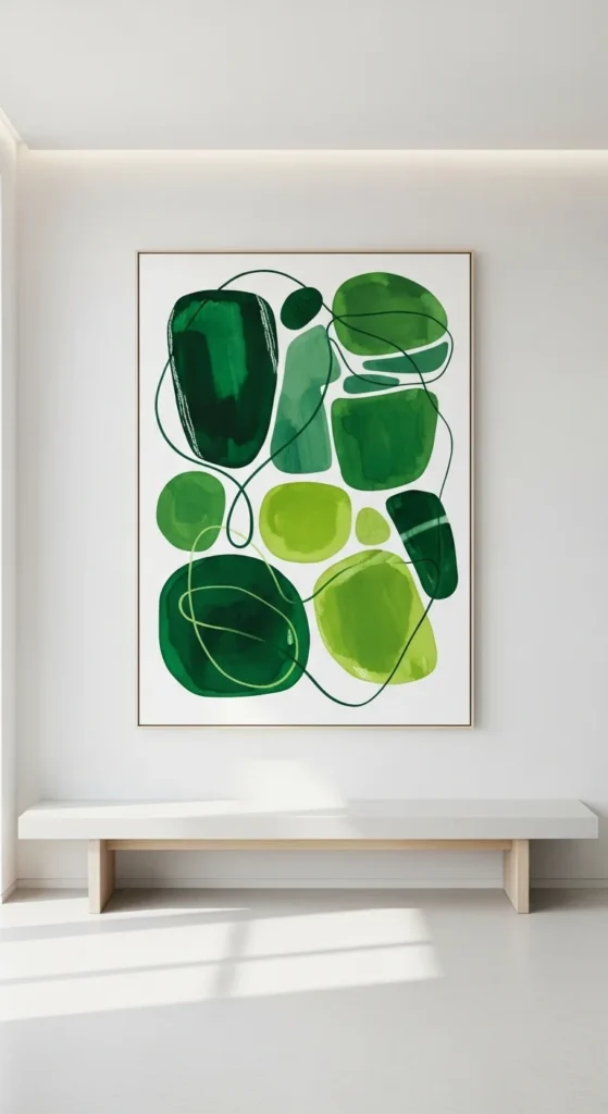 Abstract art offers a modern way to introduce green. Create your own using canvas, neutral paint, and soft green strokes. Keep shapes loose and minimal.