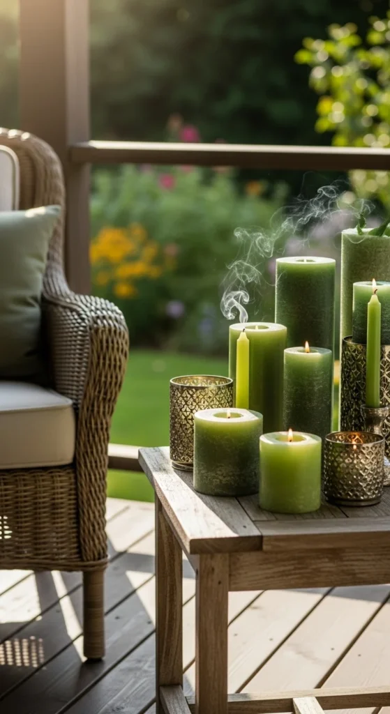 20. Green Outdoor Candle Group