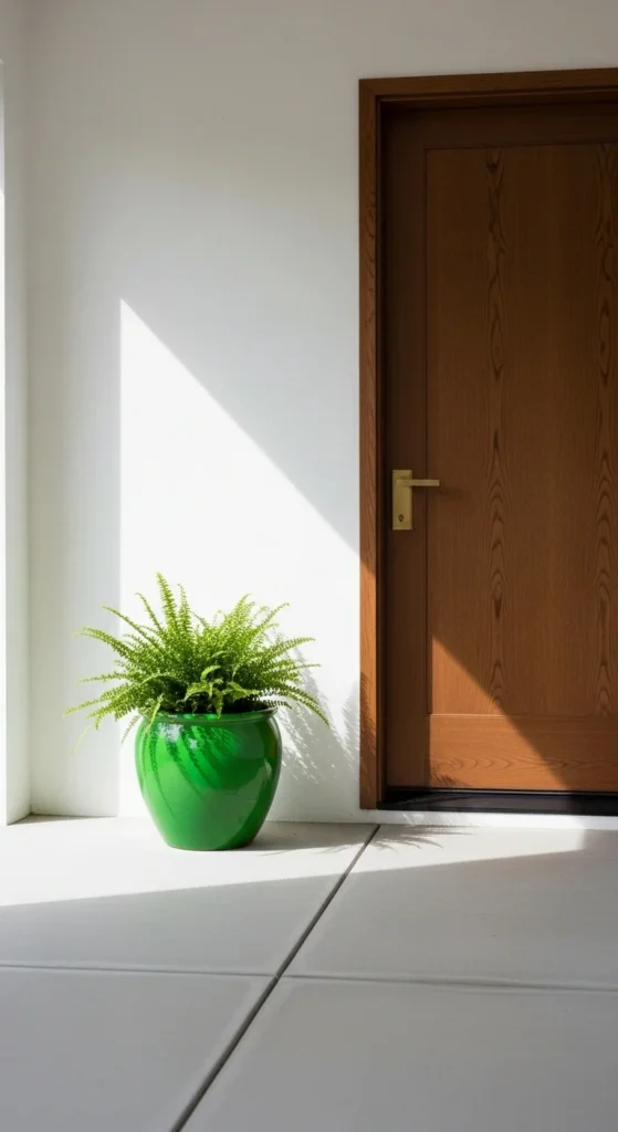 2. Potted Green Plants by the Door