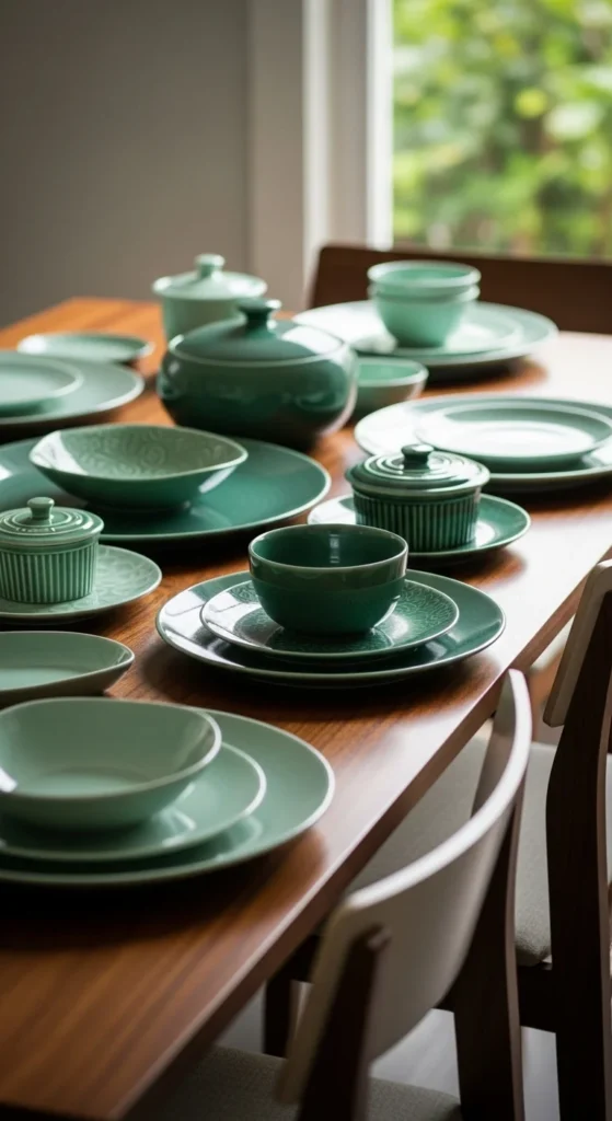 19. Green-Toned Serving Dishes