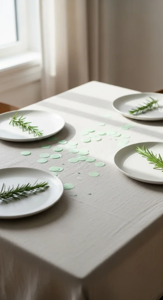 Paper confetti is an easy way to add holiday detail without effort. Cut small circles or shamrock shapes from green paper. Scatter them lightly across the table rather than covering the entire surface.
