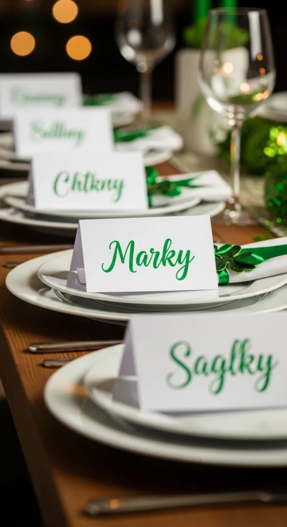 Handwritten place cards add a personal touch without extra cost. Cut small cards from thick paper and write names using a green pen or marker. Keep the lettering simple and easy to read.