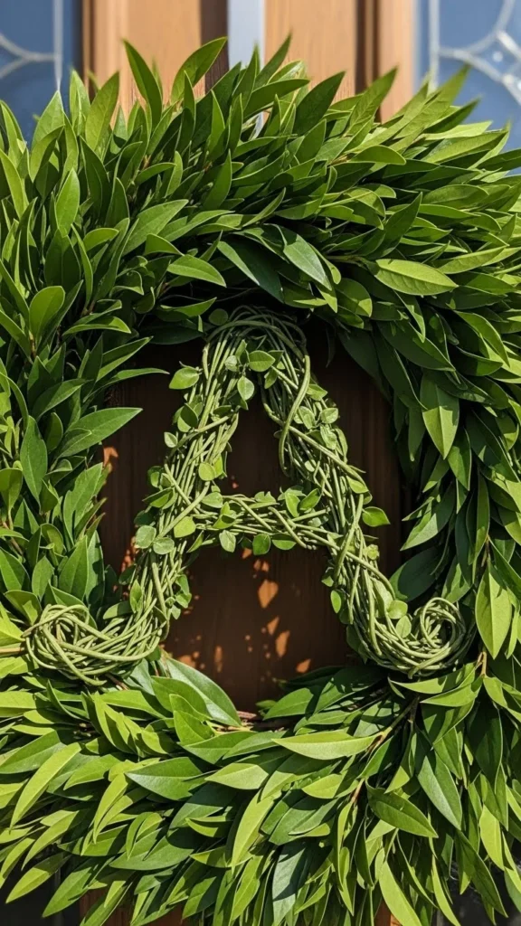 19. Simple Green Leaf Monogram Wreath