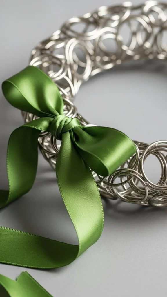 Add green ribbon loops sparingly to keep the look balanced.