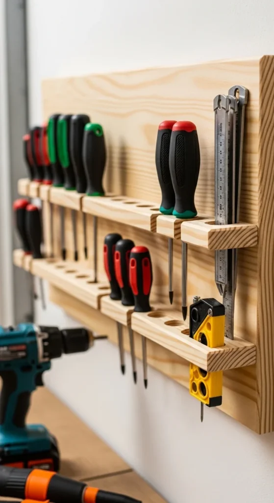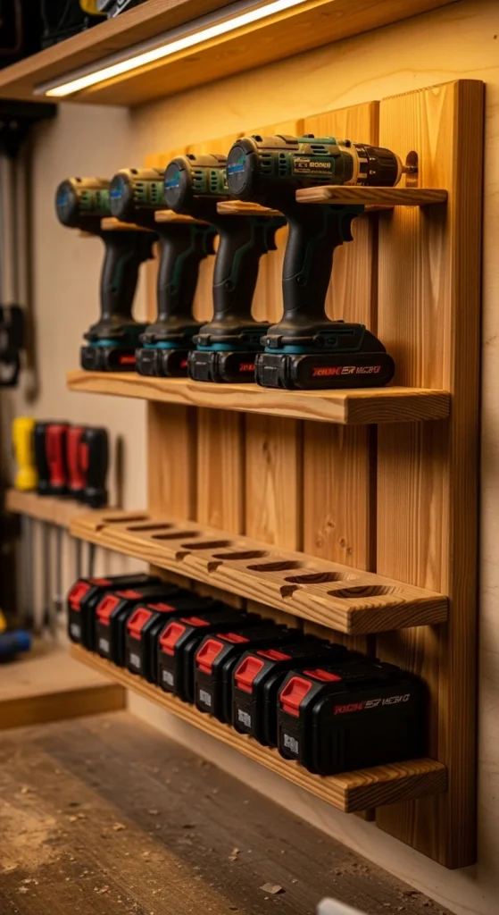 This project works especially well if cordless drills and batteries often clutter your workspace.