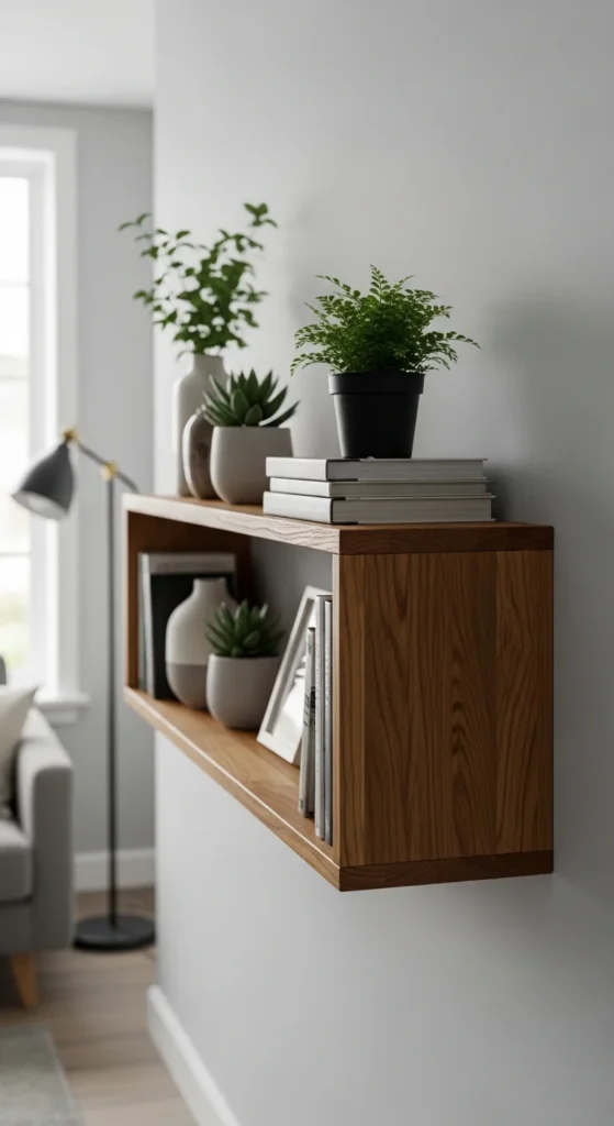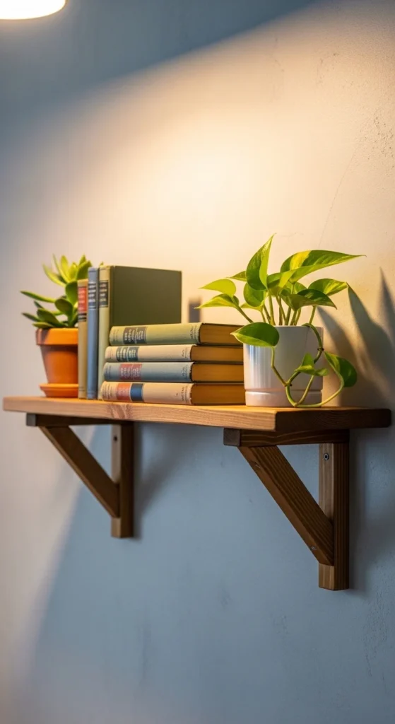 Once mounted, the hardware stays concealed so the shelf appears to “float.”